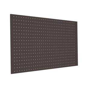Possui 04 quatro furações para instalação nas dobras laterais em formato oblongo para encaixe do painel aos parafusos previamente instalados na parede. 360 trezentos e sessenta furações de diâmetro 5.3mm em dispostos 24 vinte e quatro linhas verticais de furos em passos de 28mm e 15 quinze linhas horizontais de furos em passos de 37mm.