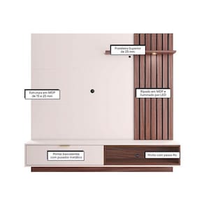 O Painel da linha Tocantins fabricado pela Colibri, é uma peça desenvolvida em materiais de alta qualidade em MDP garantindo durabilidade. Com detalhe ripado na lateral e spot em led dando um toque sofisticado e aconchegante para sua sala de estar. Possui uma prateleira para expor seus objetos, um nicho para acomodar seus aparelhos eletrônicos. Uma porta basculante com puxador metálico dourado facilitando o acesso ao seu interior. A instalação suspensa economiza espaço e adiciona um toque contemporâneo. Acomoda tvs até 65 polegadas. Una funcionalidade, estilo e qualidade adquira já o seu!