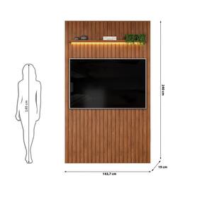 complementar, o painel conta com uma prateleira robusta de 25cm de espessura com borda chanfrada, ideal para valorizar