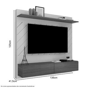 Dimensões do Produto Montado:Altura: 125 cmLargura: 136 cmProfundidade: 41,5 cmObservações:Recomendado para TVs de até 60"Portas com Corrediças MetálicasPrateleira SuperiorProduto confeccionado 100 % em chapas de MDF de 15 mm. O tampo é produzido com chapa de 15 mm em MDF com bordas de papel e acabamento U.V.