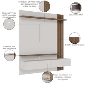 Esse painel suspenso é uma solução perfeita para otimizar espaço de circulação, apresentando um formato clean que se adapta tanto à sala de estar quanto a quartos, sem abrir mão da elegância. As linhas simples são complementadas por ripados decorativos em uma das laterais, conferindo um toque de modernidade. Já as prateleiras superior e inferior são uma excelente opção para dar aquele toque pessoal, enquanto as duas portas basculantes oferecem amplo espaço interno para organizar seus objetos de maneira funcional e estilosa. Além disso, esse painel home é compatível com TVs de até 65 polegadas, ou seja, uma sala digna de cinema.