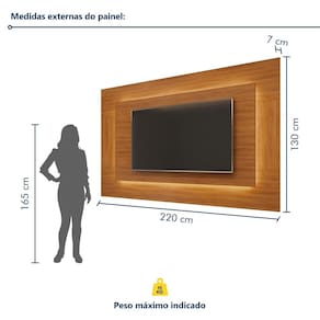 É um painel para salas grandes? Sim, pode ser utilizado na decoração para sala pequena e quanto para sala grande. Produto Montado: Sim Acabamento: Pintura UV Acompanha Lâmpada: Não Ambiente Principal: Sala de Estar codigo_ean: 7900288246134 Complexidade da Montagem: Média: pode ser montado por mais de uma pessoa e/ou necessite de maior conhecimento para montagem Cor: Naturalle Cor do Produto: Naturalle Cor Interna: Naturalle Escala de Brilho: Semi-Brilho Espessura do Espelho: mm Espessura do Painel: 7 cm Fixação na Parede: Sim Ideal para TVs até (Polegadas): 58 Itens Inclusos: 1 Painel e Kit Ferragens Linha ou Coleção: Grécia Manual de Especificação Técnica: https://product-hub-prd.madeiramadeira.com.br/652322156/documents/188df5a9-b7ba-483e-8352-842057f52186dd1214110painelatenas18001.pdf Manual de Montagem e Instalação: https://product-hub-prd.madeiramadeira.com.br/652322156/documents/28a39a38-b6c7-4e9c-8a12-cee268b69cf53198161554117576203237349.pdf Marca: Mavaular Material Principal: MDF Necessita Montagem: Sim Origem do Produto: Nacional Peso: 39,4 kg Possui Espelho: Não Possui iluminação: Sim Possui Passa Cabos: Sim Possui Pés: Não Possui Portas: Não Possui Prateleiras: Não Possui Vidro: Não Recomendações de Uso, Manutenção e Limpeza: Limpar com flanela limpa e seca. Não usar produtos abrasivos. Sistema de Montagem: Parafusos Suporte de TV Universal Incluso: Não