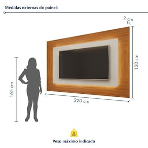 É um painel para salas grandes? Sim, pode ser utilizado na decoração para sala pequena e quanto para sala grande. Produto Montado: Sim Acabamento: Pintura UV Acompanha Lâmpada: 01 Altura do Espelho: cm Altura do Espelho 01: cm Altura do Espelho 02: cm Altura do Espelho 03: cm Altura do Espelho 04: cm Altura do Espelho 05: cm Altura do Espelho 06: cm Altura dos Pés: cm Ambiente Principal: Quarto codigo_ean: 7900288226174 Complexidade da Montagem: Alta: deve ser montado por um montador especializado Cor: Naturalle/Off White Cor do Produto: Naturalle/Off White Cor Interna: Naturalle Escala de Brilho: Semi-Brilho Espessura do Espelho: mm Espessura do Painel: 15 cm Fixação na Parede: Sim Ideal para TVs até (Polegadas): 65 Itens Inclusos: 1 Painel, Kit Ferragens e Manual de Montagem Largura do Espelho: cm Largura do Espelho 01: cm Largura do Espelho 02: cm Largura do Espelho 03: cm Largura do Espelho 04: cm Largura do Espelho 05: cm Largura do Espelho 06: mm Linha ou Coleção: Grécia Manual de Montagem e Instalação: https://product-hub-prd.madeiramadeira.com.br/830927/documents/7c34ac10-319e-4edc-9361-52f20dcdc5c81214118painelatenas22001.pdf Marca: Mavaular Material Principal: MDF/MDP Necessita Montagem: Sim Origem do Produto: Nacional Peso: 48 kg Possui Espelho: Não Possui iluminação: Sim Possui Passa Cabos: Sim Possui Pés: Não Possui Portas: Não Possui Prateleiras: Não Possui Vidro: Não Recomendações de Uso, Manutenção e Limpeza: Limpar com flanela limpa e seca. Não usar produtos abrasivos. Sistema de Montagem: Parafusos Suporte de TV Universal Incluso: Não