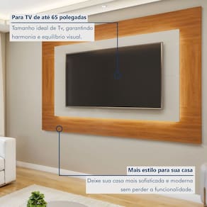 Com o Painel de TV com LED Grécia, sua sala ganha uma experiência de entretenimento única. Seu design moderno e sofisticado suporta TVs de até 65" e conta com iluminação LED que valoriza a decoração do ambiente. O painel central sobreposto, com efeito flutuante, acrescenta elegância e modernidade ao espaço. Ideal para quem busca funcionalidade e estilo, este painel transforma sua sala, deixando-a mais atraente, iluminada e organizada, criando o cenário perfeito para momentos de lazer e convivência.