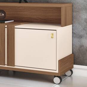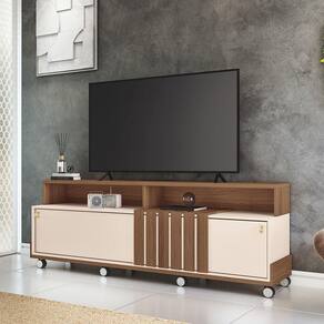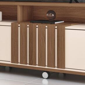 Painel Para Tv 70? Bancada Com Rodízio Karen 1.8 Castanho/off White H01 - DRossi O Painel para TV 70? Bancada com Rodízio Karen Castanho/Off White é a opção ideal para quem deseja unir praticidade, elegância e qualidade na Sala de Estar. Ele é perfeito para TV de até 70 polegadas, que pode ser colocada sobre o seu tampo robusto e espesso de 25mm. Conta com duas portas de correr com trilho em alumínio, que deslizam suavemente, proporcionando um acesso prático ao espaço interno, ideal para armazenar objetos e aparelhos eletrônicos. Os puxadores em poliestireno, com design exclusivo e acabamento dourado, são um detalhe elegante que harmoniza perfeitamente com os rodízios cromados de 50mm, garantindo não apenas sofisticação, mas também praticidade ao facilitar a movimentação do movimento para a limpeza. O detalhe ripado na frente do móvel combina perfeitamente o estilo rústico e com a modernidade, trazendo personalidade à decoração. Produzido em MDP e MDF de 25mm e 15mm, utiliza materiais resistentes e sustentáveis, garantindo durabilidade e respeito ao meio ambiente. Deixe sua sala mais charmosa e prática com o Painel Bancada Karen! Dimensões do Produto: Altura Total: 64 cm Largura Total: 180 cm Profundidade Total: 40 cm Peso: 49 kg Especificações do Produto: Material da Estrutura: MDF e MDP Espessura das Chapas: 15mm/25mm Peso Suportado Distribuído: 40 kg Distribuídos Acabamento: Impressão UV Escala de Brilho: Brilho/Fosco Suporta TV de até: 70 Polegadas Possui Prateleiras: Não Possui Portas: Sim Quantidade de Portas: 2 Portas Tipo de Porta: Correr Possui Gavetas: Não Possui Puxador: Sim Material do Puxador: Poliestireno Possui Nicho: Sim Quantidade de Nichos: 2 Nichos Possui Espelho: Não Possui Pés: Sim Tipo dos Pés: Rodízios Diferenciais: Design moderno; Detalhe ripado; Tampo de 25mm; Portas com trilho em alumínio; Rodízios cromados 50mm. Sistema de Montagem: Girofix, Cavilhas e Parafusos Manual de Montagem: Sim Complexidade da Montagem: Média Montagem: Recomendamos que seja feita por um profissional Garantia: 90 dias contra defeito de fabricação Instruções de Limpeza: Utilizar um pano limpo e levemente úmido Você irá Receber: 1 Painel Bancada. Entregue em: 1 Volume