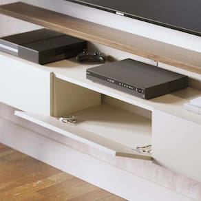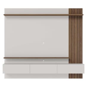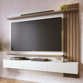 Esse painel suspenso é uma solução perfeita para otimizar espaço de circulação, apresentando um formato clean que se adapta tanto à sala de estar quanto a quartos, sem abrir mão da elegância. As linhas simples são complementadas por ripados decorativos em uma das laterais, conferindo um toque de modernidade. Já as prateleiras superior e inferior são uma excelente opção para dar aquele toque pessoal, enquanto as duas portas basculantes oferecem amplo espaço interno para organizar seus objetos de maneira funcional e estilosa. Além disso, esse painel home é com TVs de até 70 polegadas, ou seja, uma sala digna de cinema.