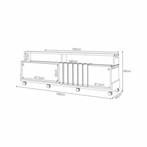 Diferenciais: Design moderno; Detalhe ripado; Tampo de 25mm; Portas com trilho em alumínio; Rodízios cromados 50mm.