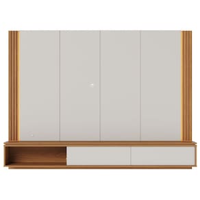 Peças nas tonalidades Off White Matte e Freijó acabamento em pintura UV fosco.