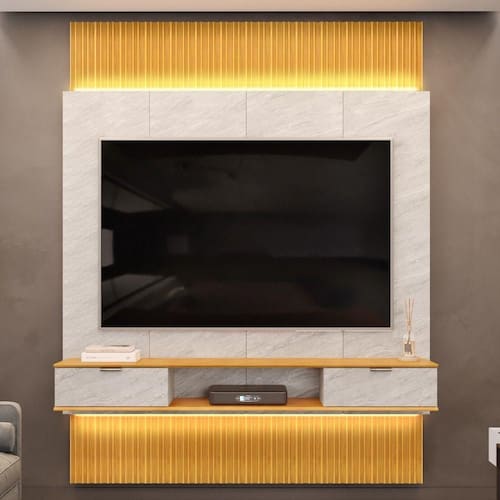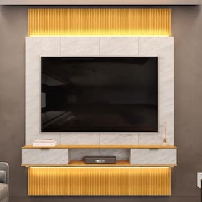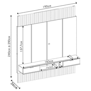 Um Painel de TV inovador é a definição de funcionalidade e estilo, com um espaço que suporta TVs de até 75 polegadas. Imagine só o melhor do entretenimento para sua família em um móvel tão elegante! E não para por aí, uma bancada suspensa com tampo e base chanfrados, duas gavetas espaçosas com corrediças telescópicas e um nicho para aparelhos eletrônicos ou decorações completam o design. As abas ripadas extensíveis, que vão do piso ao teto, são o toque final e permite que você transforme qualquer espaço com sua estética elegante e iluminação indireta via fitas de LED. Produzido 100% em MDF sustentável, o Painel Extensível não só embeleza sua casa, mas também contribui para a preservação do meio ambiente. É mais do que um móvel, é um upgrade na decoração da sua casa.