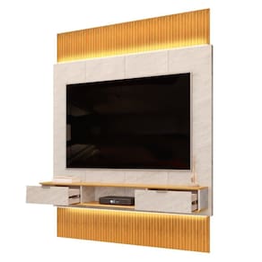 Ideal para você que quer sofisticação e muita elegância para sua Sala De Estar, o Painel Para TV 75 Pol Canelado Extensível Piso ao Teto D04 Quartzo/Cedro, da Mpozenato é uma excelente escolha.
