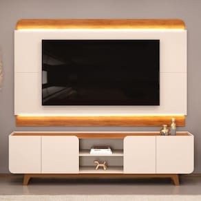 Se você valoriza estilo e funcionalidade, o Painel Para 75 Pol e Rack Bancada Com LED 220cm Collie D04 Off White/Freijó, da Mpozenato são escolhas impecáveis para sua Sala De Estar.