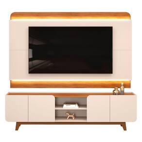 O painel complementa com maestria, exibindo abas e LED superior e inferior que emolduram o espaço da , com a aba superior arredondada adicionando um elemento decorativo sutil. Projetado para suportar até 40Kg, ele é ideal para TVs de até 75, assegurando diversão para toda a família. Com um design inteligente que inclui um tampo recuado em estilo bandeja e laterais que se estendem sobre ele, esta peça é a verdadeira definição de tendência e funcionalidade. Imagine suas noites de filme elevadas a um patamar com esta Bancada para Sala. As quatro portas convencionais com cantos curvos não são apenas estéticas, mas também dispensam o uso de puxadores, elas oferecem amplo espaço para todos os seus objetos essenciais. E para os amantes da tecnologia, há espaços dedicados para seus aparelhos eletrônicos, mantendo tudo organizado e facilmente acessível. Diga adeus à confusão de cabos! Com passa-fios inteligentemente integrados, que mantém a organização descomplicada. E não esqueçamos dos pés em madeira robusta que não só adicionam um charme rústico, mas também facilitam a limpeza e aumentam a durabilidade do seu Rack Bancada. Então, se você valoriza design, funcionalidade e durabilidade, esse conjunto é perfeito para sua casa. Prepare-se para receber elogios!