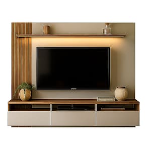 Possui 3 gavetas com corrediças telescópicas de deslize suave, 3 nichos internos que são perfeitos para acomodar aparelhos eletrônicos e 1 prateleira com LED ideal para decorações, além de um lindo detalhe ripado que garante modernidade ao móvel. Seu sistema de montagem é prático e descomplicado, realizado através de parafusos, minifix e cavilhas. Sua estrutura principal é de 1,5cm, com tampo e prateleira de 2,5cm e fundos de 0,6cm. Suporta TVs de até 75 polegadas e é de fácil fixação na parede. Medidas montado (A x L x P): 165 x 220 x 36 cm. Produto Montado: Sim Acabamento: BP Acabamento da Gaveta: BP Acabamento da Prateleira: BP Acompanha Lâmpada: 01 Ambiente Principal: Sala de Estar codigo_ean: 7900288195678 Complexidade da Montagem: Média: pode ser montado por mais de uma pessoa e/ou necessite de maior conhecimento para montagem Cor: Solanum/Branco Cor do Produto: Solanum/Branco Cor Interna: Solanum Escala de Brilho: Fosco Escala de Brilho da Gaveta: Fosco Escala de Brilho da Prateleira: Fosco Espessura do Painel: 3 cm Fixação na Parede: Sim Gaveta com Chave: Não Ideal para TVs até (Polegadas): 75 Itens Inclusos: 1 Painel, 1 Lâmpada, Kit Ferragens e Manual de Montagem Manual de Especificação Técnica: https://product-hub-prd.madeiramadeira.com.br/886772418/documents/911be12e-87e5-4fb8-b457-9a52ee0b93213063046466317521755347853.pdf Manual de Montagem e Instalação: https://product-hub-prd.madeiramadeira.com.br/886772418/documents/2545feeb-1fce-441e-a8e3-1e878c5fa5c13063045466317521755312906.pdf Marca: Foscarini Material da Gaveta: MDP Material da Prateleira: MDP Material Principal: MDP Necessita Montagem: Sim Origem do Produto: Nacional Peso: 101 kg Peso Máximo por Gaveta: 10 kg Peso Máximo por Prateleira: 10 kg Possui Espelho: Não Possui iluminação: Sim Possui Passa Cabos: Sim Possui Portas: Não Possui Prateleiras: Sim Possui Vidro: Não Quantidade de Gavetas: 03 Gavetas Quantidade de Nichos: 03 Recomendações de Uso, Manutenção e Limpeza: Limpar com flanela ou pano macio seco, não utilizar produtos abrasivos, desengordurantes, álcool ou solvente. Não expor o produto diretamente à luz solar e à umidade. Sistema de Montagem: Parafusos, minifix e cavilhas. Suporte de TV Universal Incluso: Não Tipo de Corrediça da Gaveta: Metálica Telescópica Tipo de Puxador da Gaveta: Embutido