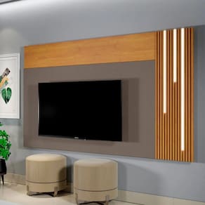 Escolha entre a versão com ou sem detalhe em LED do painel Valencia, que é um modelo sensacional, repleto de charme e elegância. Painéis em MDF. Painel ripado que destaca por sua beleza com LED Cascata. Pintura de excelente acabamento e belíssimo desenho de madeira. Comporta Tv de até 75