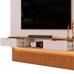 Não sabe qual móvel escolher para compor a sala de estar pequena? Com o Painel Para 85 Pol com Bancada Suspensa e LED Bit, da Lyam Decor, você encontra a solução compacta e elegante para a decoração e do seu ambiente. Cada detalhe foi projetado para oferecer a melhor experiência que você possa ter, a começar pela bancada suspensa dividida em três partes, sendo duas gavetas para guardar diversos objetos e um nicho para instalar aparelhos eletrônicos, garantindo máximo de funcionalidade enquanto aproveita seu entretenimento favorito. Já o painel para possui bordas chanfradas e fita de LED, os quais adicionam um toque decorativo e emolduram o amplo espaço para telas de até 85 polegadas. Além disso, as partes ripadas acima e abaixo do painel são extensíveis, adaptando-se perfeitamente à parede do piso ao teto, de acordo com a sua necessidade, proporcionando uma estética elegante e com acabamento sofisticado. Demais não é mesmo?! Então, comece hoje a transformar sua casa em um ambiente acolhedor com o Painel Bit.