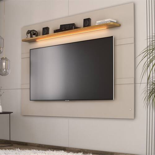 Painel Cooper para TV de até 85", projetado para valorizar o ambiente com elegância e modernidade. Produzido 100% em BP com bordas em PVC, conta com prateleira de 2,5cm e iluminação embutida, destacando o design e proporcionando um visual sofisticado. Produto Montado: Sim Acabamento: BP Acabamento da Prateleira: BP Acompanha Lâmpada: 01 Ambiente Principal: Sala de Estar codigo_ean: 7900288280305 Complexidade da Montagem: Média: pode ser montado por mais de uma pessoa e/ou necessite de maior conhecimento para montagem Cor: Bege Dunas / Carvalho Cor da Prateleira: Marrom Cor do Produto: Bege Dunas / Carvalho Cor Flex: Não Cor Interna: Bege Dunas Escala de Brilho: Fosco Escala de Brilho da Prateleira: Fosco Espessura do Painel: 1,5 cm Fixação na Parede: Sim Ideal para TVs até (Polegadas): 84 Informações Complementares: Borda em PVC, MDP BP, prateleira de 25mm com iluminação Itens Inclusos: 1 Painel, Kit Ferragens e Manual de Montagem Linha ou Coleção: Cooper Manual de Montagem e Instalação: https://product-hub-prd.madeiramadeira.com.br/867540636/documents/b3adf074-9593-439f-94de-61d7137244143299500509217617620380549.pdf Marca: Miroo Móveis Material da Prateleira: MDP Material Principal: MDP Montagem Flex: Não Necessita Montagem: Sim Origem do Produto: Nacional Peso: 50 kg Peso Máximo por Prateleira: 3 kg Possui Espelho: Não Possui iluminação: Sim Possui Passa Cabos: Sim Possui Pés: Não Possui Portas: Não Possui Prateleiras: Sim Possui Tomada: Não Possui Vidro: Não Quantidade de Nichos: Não Recomendações de Uso, Manutenção e Limpeza: Pano limpo e levemente umidecido Sistema de Montagem: Minifix, Parafusos e Cavilhas Suporte de TV Universal Incluso: Não Marca: Não Informado