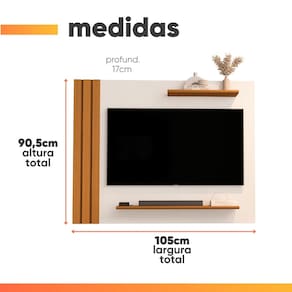 DIFERENCIAL: Acabamento pintura UV de alta qualidade / Detalhe ripado autêntico / Prateleiras para objetos decorativos ou itens de uso diário / Para TV's até 40 Polegadas.