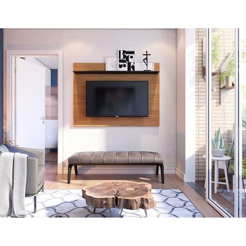 Precisa de um móvel para destacar sua TV e dar um toque especial ao ambiente ? O painel Maia suporta TVs de até 47" e possui uma prateleira superior para você expor seus itens de decoração favoritos. Experimente também combiná-lo com o nosso rack bancada Yara. Tudo isso com cores únicas, design e qualidade Colibri Móveis . Acabamento: Pintura UV Acabamento da Prateleira: Pintura UV Altura: 99,6 cm calculo: unidade Complexidade da Montagem: Baixa: pode ser montado por uma pessoa sozinha Cr: Noce Milano/Preto Cr do Produto: Noce Milano/Preto Cr Interna: Noce Milano Escala de Brilho: Fosco Escala de Brilho da Prateleira: Fosco Estilo: Minimalista Ideal para TVs até (Polegadas): 47 Informações Complementares: Possui prateleira superior decorativa. Itens Inclusos: 1 Painel, Kit Ferragens e Manual de Montagem Largura: 135 cm Linha ou Coleção: Maia Manual de Montagem e Instalação: https://cdn2.madeiramadeira.com.br/atributo/colibri-moveis/472869-1-614-painel-maia-esquema-de-montagem.pdf Material da Prateleira: MDP Material Principal: MDP Necessita Montagem: Sim Origem do Produto: Nacional Peso: 16,08 kg Peso Máximo por Prateleira: 2 kg Possui Espelho: Não Possui Gavetas: Não Possui iluminação: Não Possui Pés: Suspenso Possui Portas: Não Possui Prateleiras: 01 Possui Tomada: Não Possui Vidro: Não Profundidade: 17,7 cm Quantidade de Nichos: Não Recomendações de Uso, Manutenção e Limpeza: Limpar utilizando apenas pano umedecido com água. Sapatas Niveladoras: Não Sistema de Montagem: Parafusos status-cadastro: Aprovado Suporta Até (kg): 52 kg Suporte de TV Universal Incluso: Não Tamanho: