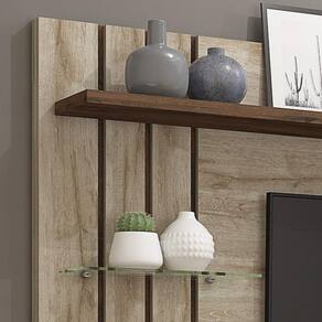 Possui também 1 prateleira lateral de vidro temperado com espessura de 5mm e prateleira superior robusta com 2,5cm de espessura - ótimos espaços para decorar seu móvel e deixá-lo ainda mais bonito.