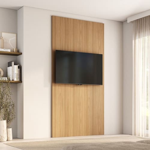 Os painéis Aruá unem aconchego e sofisticação em um design atemporal. Produzidos em chapas de 15mm com revestimento Perfect Wood Jatobá, oferecem modularidade e personalização do espaço. Versáteis, podem ser utilizados como revestimentos de parede ou painéis de TV, transformando o ambiente com harmonia e elegância. Produto Montado: Sim Acabamento: Finish Foil Ambiente Principal: Sala de Estar codigo_ean: 7900288237422 Complexidade da Montagem: Média: pode ser montado por mais de uma pessoa e/ou necessite de maior conhecimento para montagem Cor: Jatobá Cor do Produto: Jatobá Escala de Brilho: Semi-Fosco Espessura do Painel: 1,5 cm Fixação na Parede: Sim Ideal para TVs até (Polegadas): 48 Itens Inclusos: 1 Painel, Manual de Montagem e Kit Ferragens Linha ou Coleção: Aruá Manual de Montagem e Instalação: https://product-hub-prd.madeiramadeira.com.br/922078777/documents/dda81082-2a33-48a1-8a09-da0c6e8d5d6c3230664600517587118462701.pdf Marca: CabeCasa MadeiraMadeira Material Principal: MDP Necessita Montagem: Sim Origem do Produto: Nacional Peso: 34,3 kg Possui Espelho: Não Possui iluminação: Não Possui Passa Cabos: Não Possui Pés: Não Possui Portas: Não Possui Prateleiras: Não Possui Tomada: Não Possui Vidro: Não Recomendações de Uso, Manutenção e Limpeza: A limpeza deve ser feita com pano macio, levemente umedecido com água e sabão neutro. Em seguida, passe um pano seco para evitar o acúmulo de umidade. Nunca utilize produtos abrasivos, esponjas de aço, alvejantes, álcool em excesso ou solventes, pois esses produtos podem agredir o acabamento e comprometer sua aparência. Sistema de Montagem: Parafusos Suporte de TV Universal Incluso: Não