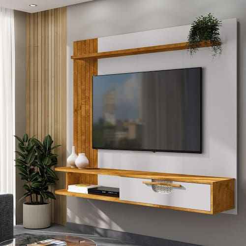 Este móvel é fabricado com materiais de alta qualidade, garantindo durabilidade e resistência. Sua estrutura é composta por MDP de 1,2cm, enquanto o tampo, base, laterais, divisórias e porta são confeccionados em MDP de 1,5cm, proporcionando maior firmeza e estabilidade. Além disso, a prateleira superior, feita em MDP de 2,5cm, oferece robustez para suportar objetos mais pesados. O design é complementado por um painel frisado em MDF de 1,2cm, conferindo um toque sofisticado e moderno ao ambiente. codigo_ean: 7900288072238 Cor: Naturalle/Off-White Cor do Produto: Naturalle/Off-White Ideal para TVs até (Polegadas): 50 Manual de Montagem e Instalação: https://product-hub-prd.madeiramadeira.com.br/978447/documents/2e78e080-668e-4b7f-b62c-f8d43f60e44f2693591112717398194583024.pdf Marca: Móveis Bechara Material Principal: MDP Peso: 37,6 kg