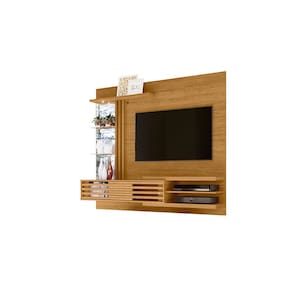 Painel Para TV Até 55 Frizz Supreme Cumaru Brilho com LED Espelhos e Portas Deslizantes Liberty Móveis - Cumaru | Marrom