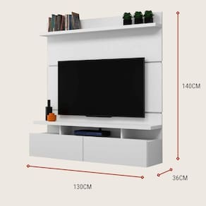 O painel Veneza é a escolha ideal para quem busca um móvel moderno, versátil e com excelente aproveitamento de espaço para salas de estar ou quartos. Com 130?cm de largura, 140?cm de altura e 36?cm de profundidade, é fabricado 100% em MDF e conta com duas portas basculantes com dobradiças com amortecimento, além de uma prateleira superior que valoriza a decoração e organiza os aparelhos eletrônicos e objetos decorativos. Seu design combina facilmente com ambientes modernos, rústicos ou clássicos, deixando qualquer espaço mais elegante e funcional.