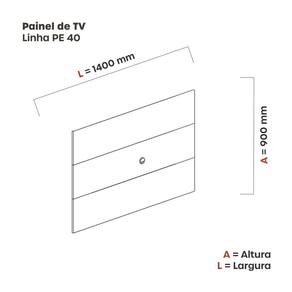 Painel central de TV Pandin Linha PE40, em MDP medindo 90cm de Altura e 140 cm de Largura 1,5 cm de profundidade ideal para completar a sala de reunião, salas de estar e ou outros ambientes, suporta TV de até 55p. Acabamento: Melamínico Ambiente Principal: Escritório Complexidade da Montagem: Baixa: pode ser montado por uma pessoa sozinha Cor: Noce Marromlle Cor do Produto: Noce Marromlle Cor Interna: Noce Marromlle Escala de Brilho: Semi-Fosco Ideal para TVs até (Polegadas): 55 Itens Inclusos: 1 Painel, Kit Ferragens e Manual de Montagem Linha ou Coleção: PE40 Manual de Montagem e Instalação: https://cdn2.madeiramadeira.com.br/atributo/pandin/715177-11-t125-0521.pdf Material Principal: MDP Necessita Montagem: Sim Origem do Produto: Nacional Painel para TV Integrado: Sim Peso: 14.81 Possui Espelho: Não Possui Possui iluminação: Não Possui Pés: Não Possui Portas: Não Possui Prateleiras: Não Recomendações de Uso, Manutenção e Limpeza: Limpeza deve ser feita com um pano levemente umidecido e um pano seco. Sistema de Montagem: Parafusos