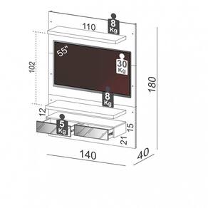 Dimensões: Altura: 180 cm Largura: 140 cm Profundidade: 40 cm Peso: 57,7 kg