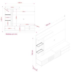 Dimensões: Altura: 162 cm Largura: 182 cm Profundidade: 37,5 cm Peso: 68,7 kg