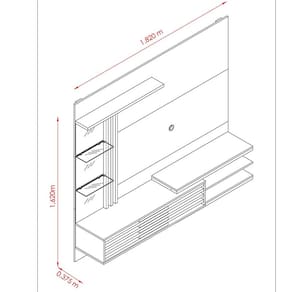 Bancada Suspensa Frizz Supreme Madetec Diferenciais do produto: Painéis em MDP de 15, 25 e 40mm com pintura UV, portas deslizantes frisadas que se sobrepõem, prateleiras de vidro 5mm para objetos decorativos, espelhos, e luminária de LED e sistema de fixação com girofix. Características.- Marca: Madetec- Material produto: MDP- Revestimento: Pintura UV- Gavetas: Não possui- Corrediças: Poliestireno- 2 Portas- 4 prateleiras sendo 2 com vidro- Puxadores: Poliestireno cromado- Entrada TV (L x A): 1,350 x 0,990 m / 55 polegadas- Sistema de montagem: Girofix- Peso total suportado: 50 Kg- Peso do Produto: 71,70 Kg Dimensões do Produto MontadoLargura: 182 cmAltura: 162 cmProfundidade: 37 cmGarantia: 3 mesesMontagem: Recomendamos que a montagem seja feita por um profissional.