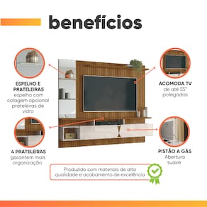 O Painel Intense 1,83m com detalhe ripado impressão 3D para TV de até 55 polegadas é perfeito para você que precisa de um ambiente com melhor organização. Possui estrutura feita com materiais de qualidade, 2 portas basculantes com pistão a gás, detalhes com espelho e prateleiras decorativas de vidro. Ainda conta com espaço para eletrônicos garantindo praticidade no seu dia a dia, e detalhe ripado em impressão 3D. Sua sala com um painel de qualidade e ótimo custo-benefício!