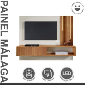 Apresentamos nosso Painel de TV, uma peça que combina luxo e praticidade para sua sala de estar. Seu design sofisticado, com acabamento premium e detalhes elegantes, adiciona um toque de glamour ao ambiente. Além disso, sua estrutura resistente e de alta qualidade garantem durabilidade e estabilidade. Transforme sua sala em um espaço de entretenimento de elite com o Painel de TV, uma escolha de distinção para os mais exigentes. Acabamento da Porta: Pintura Acabamento da Prateleira: Pintura Acompanha Lâmpada: 03 Ambiente Principal: Sala de Estar Complexidade da Montagem: Alta: deve ser montado por um montador especializado Cor: Off White/Naturalle Cor do Produto: Off White/Naturalle Escala de Brilho: Fosco Escala de Brilho da Porta: Fosco Escala de Brilho da Prateleira: Fosco Ideal para TVs até (Polegadas): 55 Itens Inclusos: 1 Painel Malaga, 1 manual de montagem e kit ferragens Manual de Montagem e Instalação: https://cdn2.madeiramadeira.com.br/prd/mavaular/1810183-Manual%20de%20Montagem%20Painel%20Roma.pdf Material da Porta: MDF Material da Prateleira: MDP Material Principal: MDF/MDP Necessita Montagem: Sim Origem do Produto: Nacional Peso: 68,9 kg Peso Máximo por Prateleira: 6 kg Possui Espelho: Não Possui iluminação: Sim Possui Pés: Não Possui Portas: 01 Possui Prateleiras: 01 Recomendações de Uso, Manutenção e Limpeza: Utilizar para limpeza apenas um pano úmido. Sistema de Montagem: Parafos e Cavilhas Tipo de Puxador da Porta: Embutido
