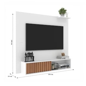 O(a) Painel para TV Até 55 Polegadas Tucson 1 Porta Ripado Branco/Freijó - Jcarvalho é produzido em MDP na escala de brilho Fosco, e possui um grau de dificuldade de montagem: Médio.