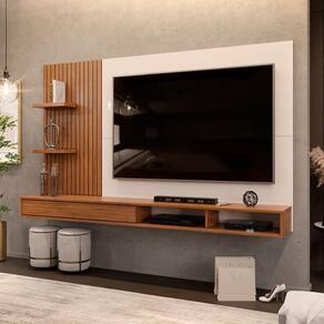 Painel Para Tv Até 60 Polegadas Detalhe Frisado Com Nichos Abel Madeirado/off White Madeirado/off White