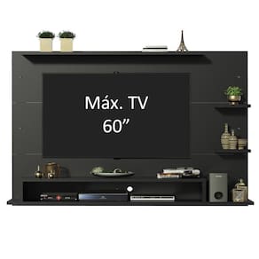 Com ótimo tamanho, comporta TV de até 60 polegadas. A parte baixa contém um nicho pensado especialmente para uma boa disposição dos aparelhos eletrônicos. Além disso, o painel conta com duas aberturas que servem para a passagem de fios e cabos. Assim, você evita aquela bagunça indesejada e ainda deixa o ambiente mais clean.