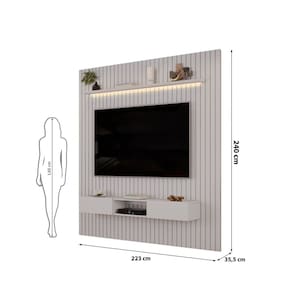 com lente difusora que proporciona uma iluminação suave e acolhedora. Produto Montado: Sim Acompanha Lâmpada: 01 Ambiente Principal: Sala de Estar codigo_ean: 7900288273376 Complexidade da Montagem: Alta: deve ser montado por um montador especializado Cor: Bali Cor do Produto: Bali Espessura do Painel: 1,5 cm Fixação na Parede: Sim Ideal para TVs até (Polegadas): 60 Itens Inclusos: 1 Painel, Kit Ferragens e Manual de Montagem Linha ou Coleção: Trento Manual de Especificação Técnica: https://product-hub-prd.madeiramadeira.com.br/374976491/documents/3b7f75fe-7335-4b67-8fd6-cd9c94094a7e3242966531617590922411619.pdf Manual de Montagem e Instalação: https://product-hub-prd.madeiramadeira.com.br/374976491/documents/26b99e4b-96d0-4fa0-bbe9-997dc6f194493266522531617599328183665.pdf Marca: Dj Móveis Material Principal: MDF/MDP Origem do Produto: Nacional Peso: 86,75 kg Possui Espelho: Não Possui iluminação: Sim Possui Passa Cabos: Não Possui Prateleiras: Sim Possui Vidro: Não Sistema de Montagem: Minifix, cavilhas, porca cilíndrica e parafusos Suporte de TV Universal Incluso: Não