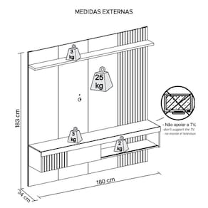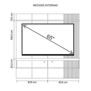 - Possui 1 prateleira - Suporta TV's até 65 polegadas - Possui 2 Nichos com amplo espaço - Possui 1 Porta de correr - Possui 1 Tampo