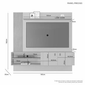 Dimensões:Altura: 162 cmLargura: 163 cmProfundidade: 33 cmPeso: 52,75kgCaracterísticas:ATENÇÃO PRODUTO EM MDP:*100% MDP* Puxadores em couro*Porta com dobradiça de pressão*Nicho para eletrônicos*Espaço para TV: 1630mm x 900mm (LxA)*Recomenda-se TV até 65