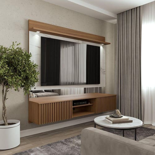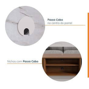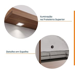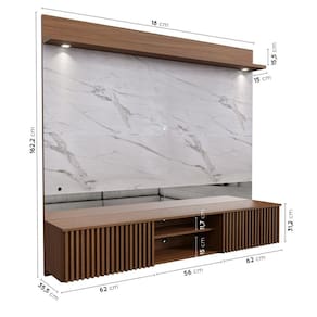Com um design contemporâneo, o painel para TV Azaléia é a solução perfeita para quem deseja renovar sua sala de estar ou TV com estilo e elegância. Este móvel conta duas portas basculantes, com detalhes ripado, pintura marmorizada 3D e sistema de pistão a gás. Além disso, contém dois nichos internos que são perfeitos para acomodar aparelhos eletrônicos. Possui também um painel com detalhes espelhados em sua borda inferior e uma prateleira superior equipada com luzes de led. Suporta TVs de até 65”. Medidas (AxLxP): 160,8 x 180 x 36,3 cm. Acabamento: Pintura UV Acabamento da Porta: Pintura UV Acabamento da Prateleira: Pintura UV Acompanha Lâmpada: 01 Altura do Espelho: 15 cm Ambiente Principal: Sala de Estar Complexidade da Montagem: Média: pode ser montado por mais de uma pessoa e/ou necessite de maior conhecimento para montagem Cor: Noce Milano/Calacatta Cor do Produto: Noce Milano/Calacatta Cor Flex: Cor Interna: Noce Milano Escala de Brilho: Fosco Escala de Brilho da Porta: Fosco Escala de Brilho da Prateleira: Fosco Espessura do Espelho: 3 Fita Integrada: Sim Formato do Espelho: Retangular Ideal para TVs até (Polegadas): 65 Itens Inclusos: 1 Painel, kit de ferragens e manual de montagem Largura do Espelho: 89,8 cm Linha ou Coleção: Ibiza Manual de Montagem e Instalação: https://cdn2.madeiramadeira.com.br/atributo/colibri-moveis/1201046-12-0072-manualhomeazaleia.pdf Material da Porta: MDP Material da Prateleira: MDP Material do Puxador da Porta: MDP Material Principal: MDP Necessita Montagem: Sim Origem do Produto: Nacional Peso: 58,26 Peso Máximo por Prateleira: 2 Possui Espelho: Sim Possui iluminação: Sim Possui Pés: Não Possui Portas: 02 Possui Prateleiras: 01 Possui Tomada: Não Possui Vidro: Não Quantidade de Espelho: 02 Espelhos com Tamanhos Iguais Quantidade de Nichos: 02 Recomendações de Uso, Manutenção e Limpeza: Pano Seco Sistema de Montagem: Cavilha, girofix, parafusos e cola Suporte de TV Universal Incluso: Não Tipo de Fixação do Espelho: Fita Dupla Face Tipo de Madeira Maciça: Tipo de Porta: Basculante Tipo de Puxador da Porta: Embutido