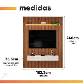 MODELO: Painel Para TV Até 65 Polegadas 1,83m Ripado Autêntico Com Led Montreal Com Nicho Efraín