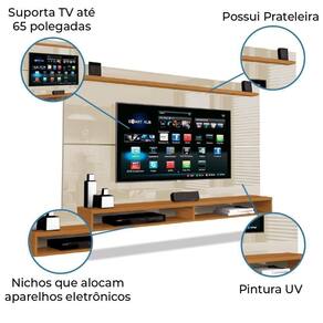 Painel Para Tv Até 65 Polegadas Com Prateleira 1,80m Max Cedro/off White Off White Cedro