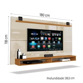 O Painel Max é o móvel que você procura para completar sua casa! Com seu design elegante e moderno. Ele possui espaço para TV de até 65 polegadas e nichos espaçosos para aparelhos eletrônicos, além de uma prateleira superior para objetos de decoração. Perfeito deixar seu ambiente sofisticado. MARCA: EDN Móveis MODELO:Painel Para TV Até 65 Polegadas Com Prateleira 1,80m Max Cedro/Off White MEDIDAS:[ A ] = 118 cm [ L ] = 180 cm [ P ] = 28,5 cm COR: Off Withe MATERIAL: MDP SUPORTA Até: TV de 65 Polegadas POSSUÍ PORTAS: Não POSSUÍ NICHOS: Sim PESO: 32,8 kg GARANTIA: 3 meses VOLUMES: 1 volume ITENS INCLUSOS: Um painel, kit de ferragens e manual de montagens OBS: Montagem não inclusa. Entregamos até a porta de entrada da casa do cliente ou até a portaria do condomínio. MARCA: EDN Móveis | MODELO: Painel Para TV Até 65 Polegadas Com Prateleira 1,80m Max Cedro/Off White | COR: Cedro/ Off White | ACABAMENTO: Ripado nas laterais (Adesivo) | ESTRUTURA: MDP | POSSUÍ PORTAS: Não | POSSUÍ POSSUÍ NICHOS: Sim 2 | SUPORTA TV ATÉ : 65 Polegadas | PESO: 32,8 kg | ITENS INCLUSOS: Um Rack, Kit De ferragens E Manual de Montagens | INSTRUÇÕES E CUIDADOS: Limpar com pano levemente umedecido com água e sabão neutro. | GARANTIA: 3 meses Cor: Off White Cedro