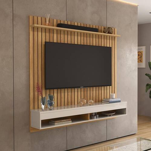 Painel Para Tv até 70 Polegadas Frisado Detroit Freijó/Off White