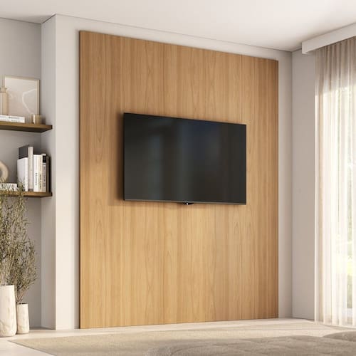 Os painéis Aruá unem aconchego e sofisticação em um design atemporal. Produzidos em chapas de 15mm com revestimento Perfect Wood Jatobá, oferecem modularidade e personalização do espaço. Versáteis, podem ser utilizados como revestimentos de parede ou painéis de TV, transformando o ambiente com harmonia e elegância. Produto Montado: Sim Acabamento: Finish Foil Ambiente Principal: Sala de Estar codigo_ean: 7900288237446 Complexidade da Montagem: Média: pode ser montado por mais de uma pessoa e/ou necessite de maior conhecimento para montagem Cor: Jatobá Cor do Produto: Jatobá Escala de Brilho: Semi-Fosco Espessura do Painel: 1,5 cm Fixação na Parede: Sim Ideal para TVs até (Polegadas): 75 Itens Inclusos: 1 Painel, Manual de Montagem e Kit Ferragens Linha ou Coleção: Aruá Manual de Montagem e Instalação: https://product-hub-prd.madeiramadeira.com.br/530523738/documents/09562559-e5fc-4c35-b473-c835320d4ab93230678600517587122438909.pdf Marca: CabeCasa MadeiraMadeira Material Principal: MDP Necessita Montagem: Sim Origem do Produto: Nacional Peso: 58,3 kg Possui Espelho: Não Possui iluminação: Não Possui Passa Cabos: Não Possui Pés: Não Possui Portas: Não Possui Prateleiras: Não Possui Tomada: Não Possui Vidro: Não Recomendações de Uso, Manutenção e Limpeza: A limpeza deve ser feita com pano macio, levemente umedecido com água e sabão neutro. Em seguida, passe um pano seco para evitar o acúmulo de umidade. Nunca utilize produtos abrasivos, esponjas de aço, alvejantes, álcool em excesso ou solventes, pois esses produtos podem agredir o acabamento e comprometer sua aparência. Sistema de Montagem: Parafusos Suporte de TV Universal Incluso: Não