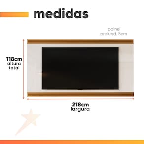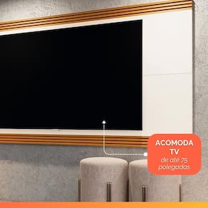 MEDIDAS PAINEL: A = 118 cm L = 218 cm P = 5 cm PESO SUPORTADO: 35 kg PESO: 35 kg IDEAL PARA TV DE ATÉ: 75 Polegadas MODELO: Painel Para TV Até 75 Polegadas 2,18m Detalhe Ripado Nex MARCA: EDN Móveis COR: Off White/Madeirado PINTURA: UV de alta qualidade ACABAMENTO: Semi Brilho MATERIAL: MDP/MDF ESPESSURA DO MATERIAL DA ESTRUTURA: 15 mm DIFERENCIAL: Design moderno / Acabamento pintura UV de alta qualidade / Detalhe ripado autêntico / Para TV's até 75 Polegadas. ITENS INCLUSOS: 1 painel, 1 manual de montagem e kit parafusos INSTRUÇÕES E CUIDADOS: Para maior durabilidade, recomendável que a limpeza dos móveis seja feita com pano limpo e seco. Não usar produtos químicos ou abrasivos. GARANTIA: 3 meses pelo fabricante. OBS: Rack Bancada da foto ilustrativa não incluso.