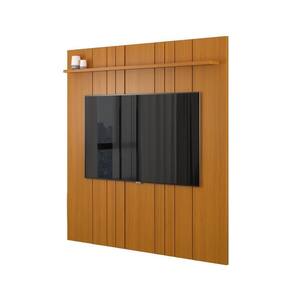 A prateleira superior de 25mm proporciona espaço para objetos decorativos, enquanto o painel oferece um toque de sofisticação e modernidade ao ambiente.