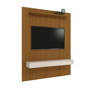 Painel Para Tv Até 75 Polegadas Ripado Impressão 3d Egeo Com Nicho 1,80m Cedo Off White Edn Cedro