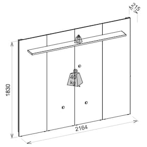 Dimensões do Produto Montado: Altura: 183 cm Largura: 216,4 cm Profundidade: 21,5 cm Peso: 58,8 kg