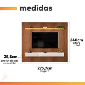 MODELO: Painel Para TV Até 90 Polegadas 2,75m Ripado Autêntico Com Led Montreal Com Nicho Efraín